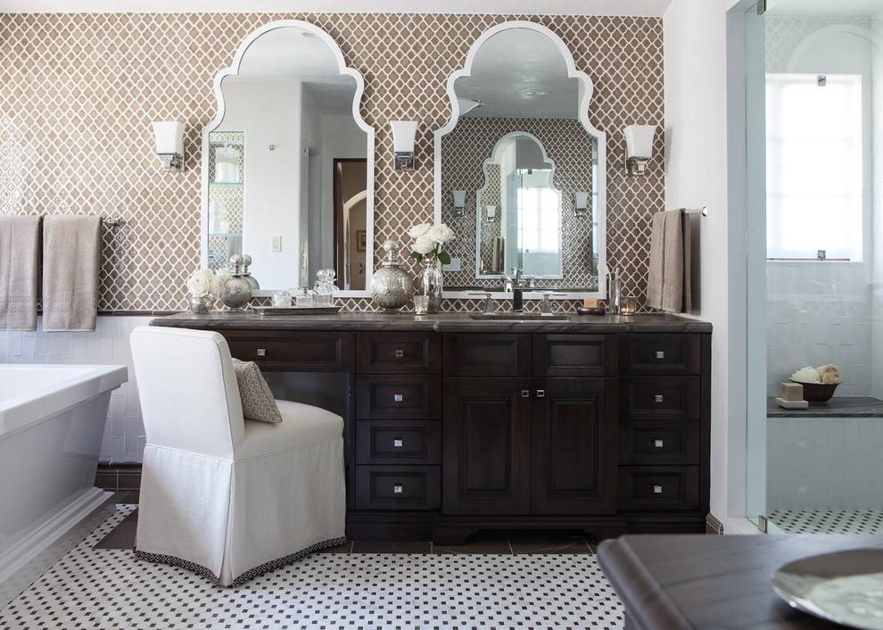 - Приветствуется наличие плитки с мелким цветочным орнаментов в оформлении стен