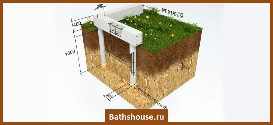- расстояние между нижней частью ростверка и поверхностью грунта не должно быть меньше 150 мм, чтобы он не деформировался при вспучивании.
