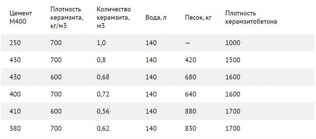 А тут рассмотрены пропорции материала для приготовления смеси/блоков с разными показателями плотности: