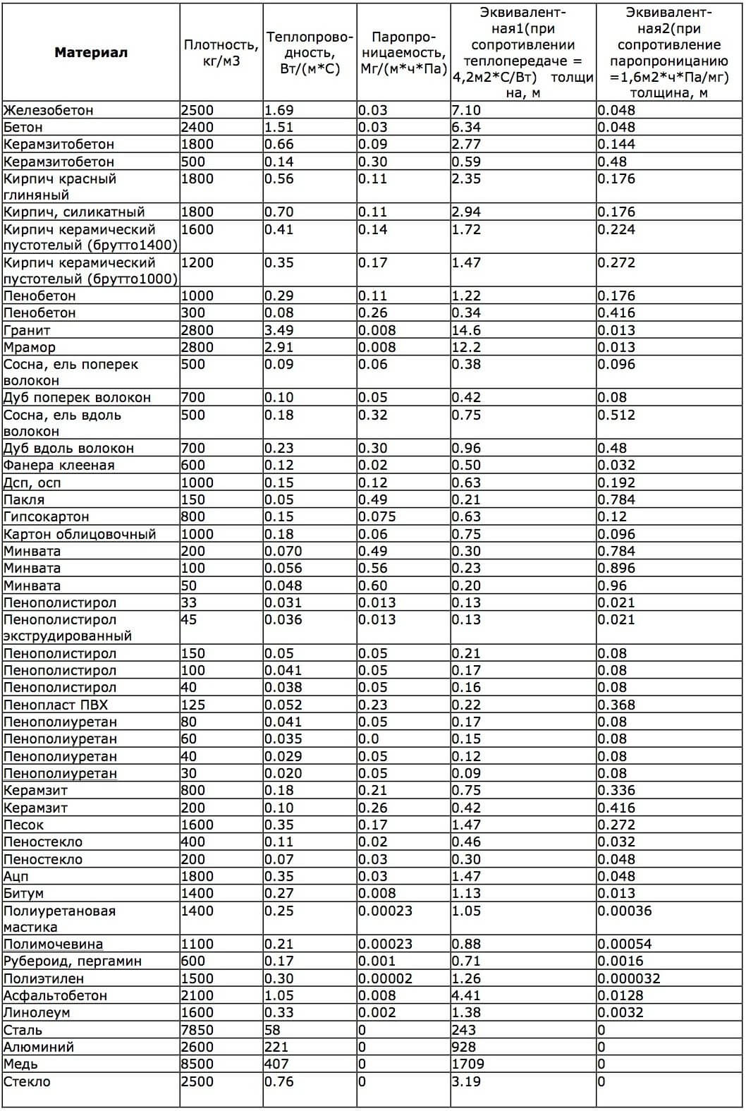 Сравнительный анализ теплопроводимости пенобетона и других материалов