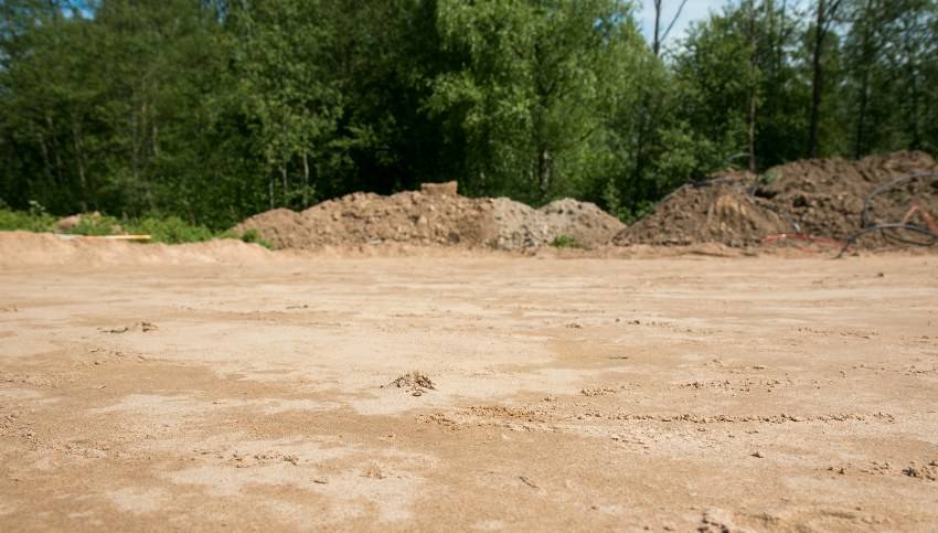 Теперь пришло время формировать песчаную подушку. Песок относится к не пучинистым грунтам и служит демпферов в случае подвижек нижних слоев грунта. Толщина песчаной подушки должна составлять 0,2-0,5 метра.
