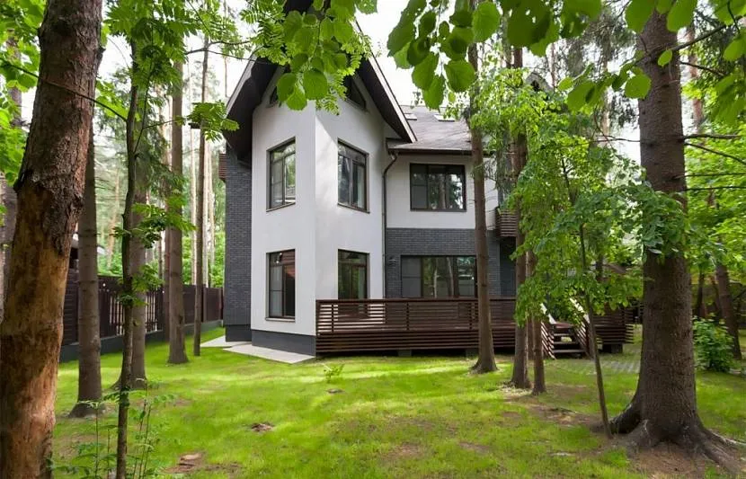Комбинированная облицовка загородного коттеджа из пеноблоковИсточник yandex.uz