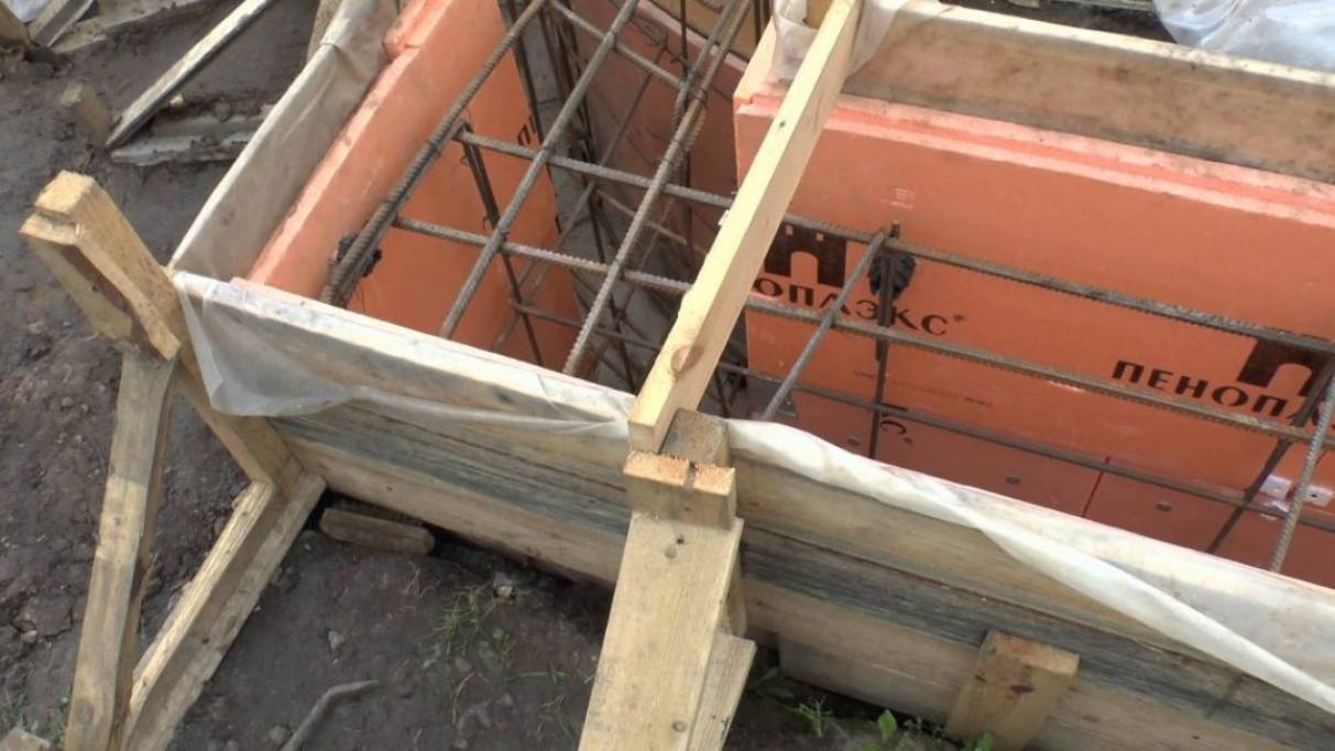 - Затем по периметру устанавливают опалубку, внутри которой располагают армирующий стальной каркас, далее проводят заливку бетоном.