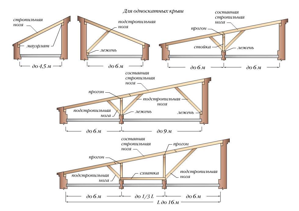 Обычно стропила опирают на две стены, имеющие различную высоту.