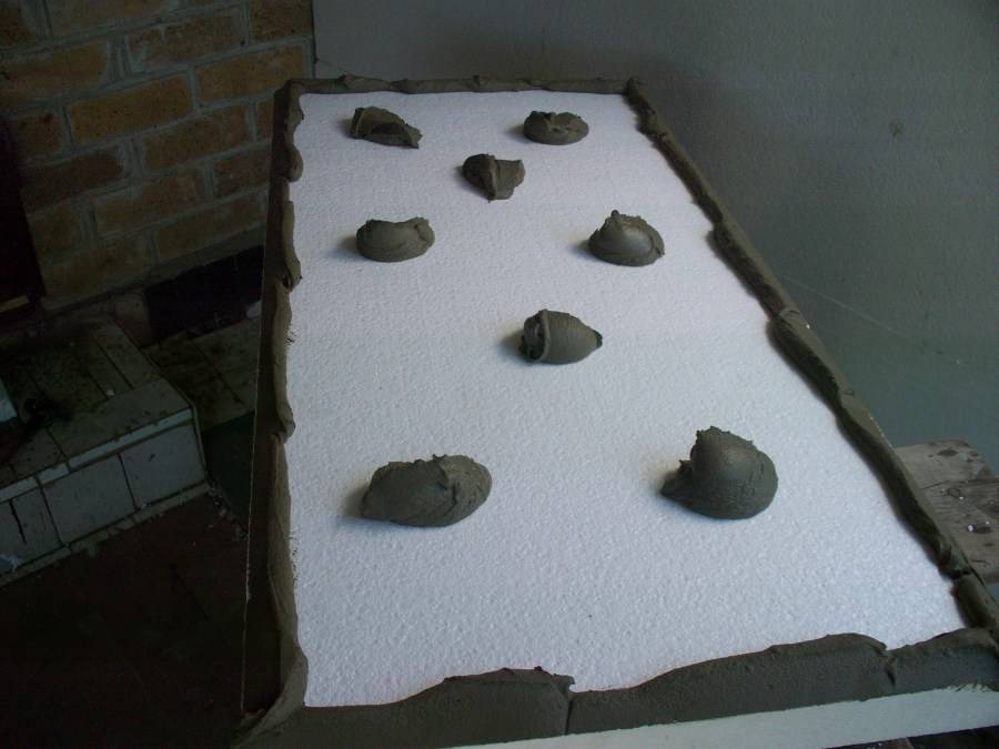 Все зависит от ровности поверхности стены. Если стена идеально ровная, то можно наносить клей шпателем всплошную, как на плитку. Если ее поверхность имеет неровности не более 1 см, можно наносить пунктиром, а если отклонения от плоскости 1-2 см – лучше всего «ляпухами». При этом, объем наносимого клея зависит также от ровности стены: на впадинах — больше, на выпуклостях — меньше. Раствор может наноситься, как на стену, так и на саму плиту. Кому как удобнее.