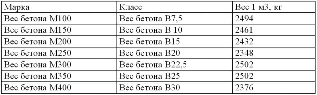| Класс бетона | Средняя прочность (кг/см2) | Марка бетона |