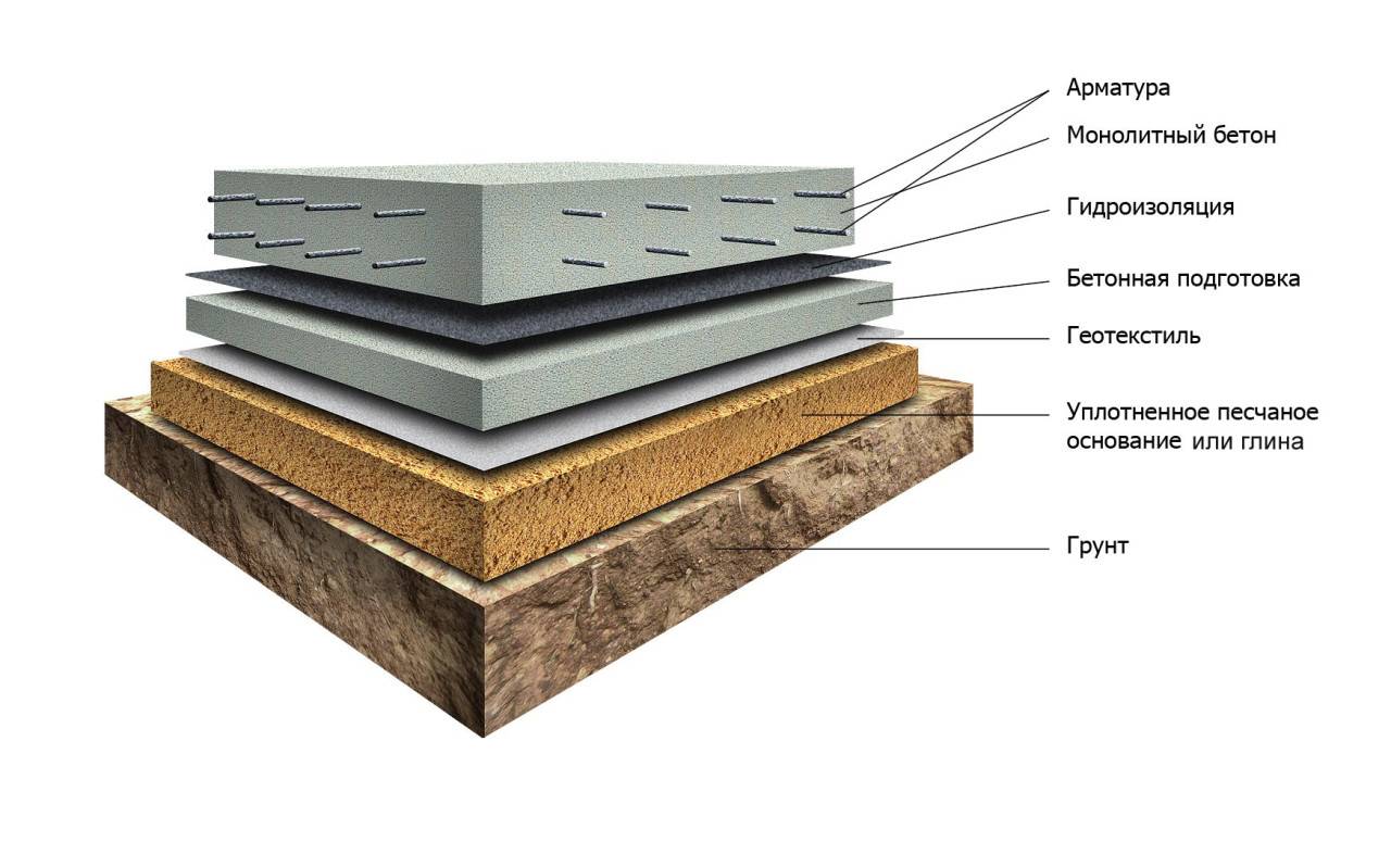 Тут стоит вспомнить о том, что разница глубины погружения бетонной конструкции означает заметную разницу плотности контактов монолита и влаги из грунта. Обычный тип ленточного основания опускают на глубину, проходящую ниже границы промерзания почвы. Основание располагается в более сложных условиях, испытывает воздействие изменения уровня вод, периодического притока талой влаги, дождевой.