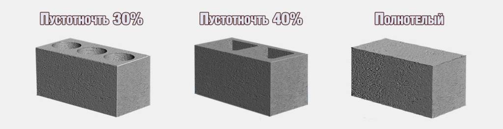 Также необходимо учитывать и размер пустот, общий объем которых варьируется в пределах от 30% до 40%. Поэтому полнотелые блоки будут самыми тяжелыми и дорогими, но их конструктивные характеристики будут выше.
