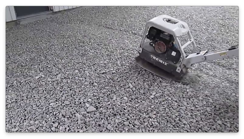 После того, как площадка расчищена и выровнена, ее основание необходимо уплотнить. Самый простой «трамбовщик» — обрезок бревна с поперечной рукоятью, более современный способ — вибрационная машина.