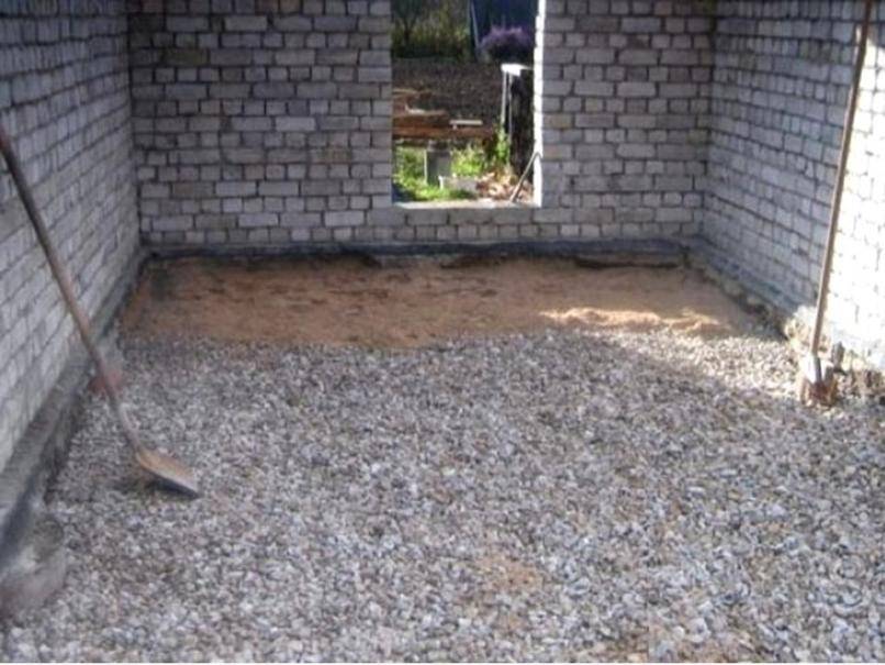 Смесью известняка и щебенки, которую можно заменить измельченным кирпичом, покрывается подготовленное основание. Поверх утрамбованного грунта следует уложить дополнительный слой гидроизоляции.