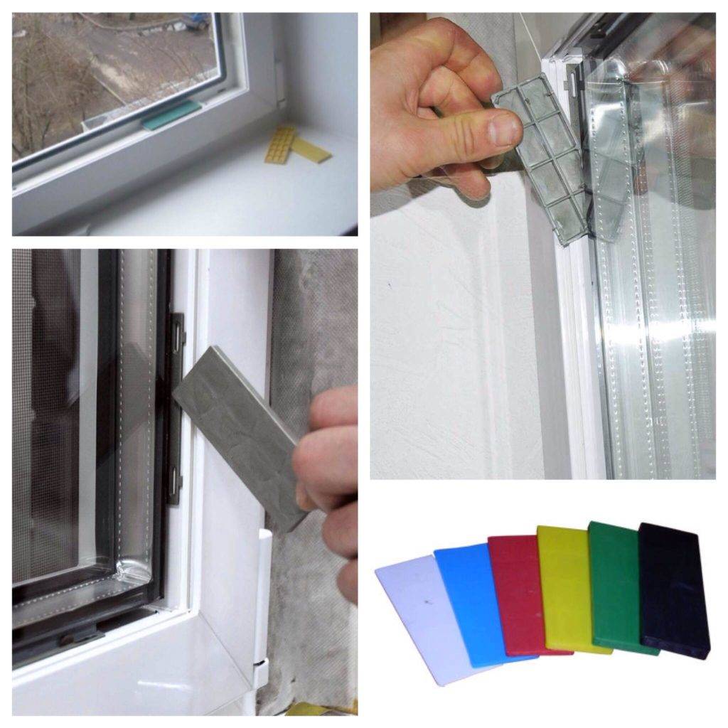 Чтобы профиль не прогибался внутрь, устанавливают по одной пластине по бокам стеклопакета. Все пластины на месте, но створка все же провисла? Возможно, они находятся слишком близко/далеко от углов. Или пластины слишком узкие. Попробуйте установить угловые на 2-3 мм шире стеклопакета. Боковые же не должны быть шире последнего – иначе может заедать фурнитуру.