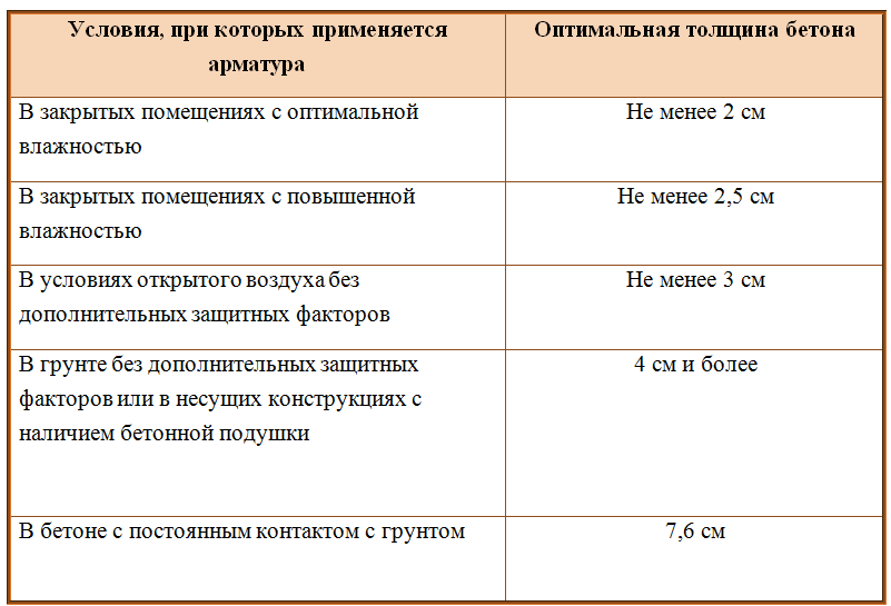Конкретные значения толщины защитного слоя бетона устанавливаются нормативными документами — СНИП и созданными на их основе Сводами Правил. При этом обязательно учитываются особенности железобетонной конструкции, о которых было сказано выше.